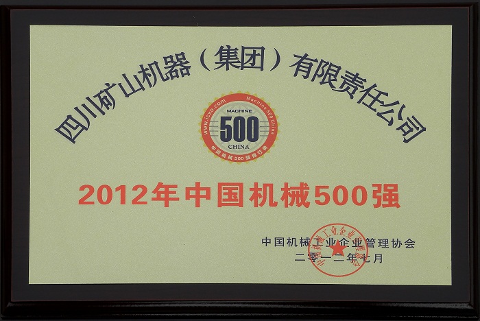 Machinery Industry Economic Management Research Institute and the World Executive Group, jointly sponsored the "China Machinery 500 on the list, Sichuan Mining Machinery (Group) Co., Ltd. ranked 400 in 2012, organized by the China Machinery Enterprise Management Association. Sichuan Mining Group, as the the provincial equipment manufacturing industry backbone enterprises, will continue to lay a solid foundation to improve the independent innovation of enterprises, enhance the quality of management and the level of scientific and technological innovation, and contribute to economic and social development in Sichuan.